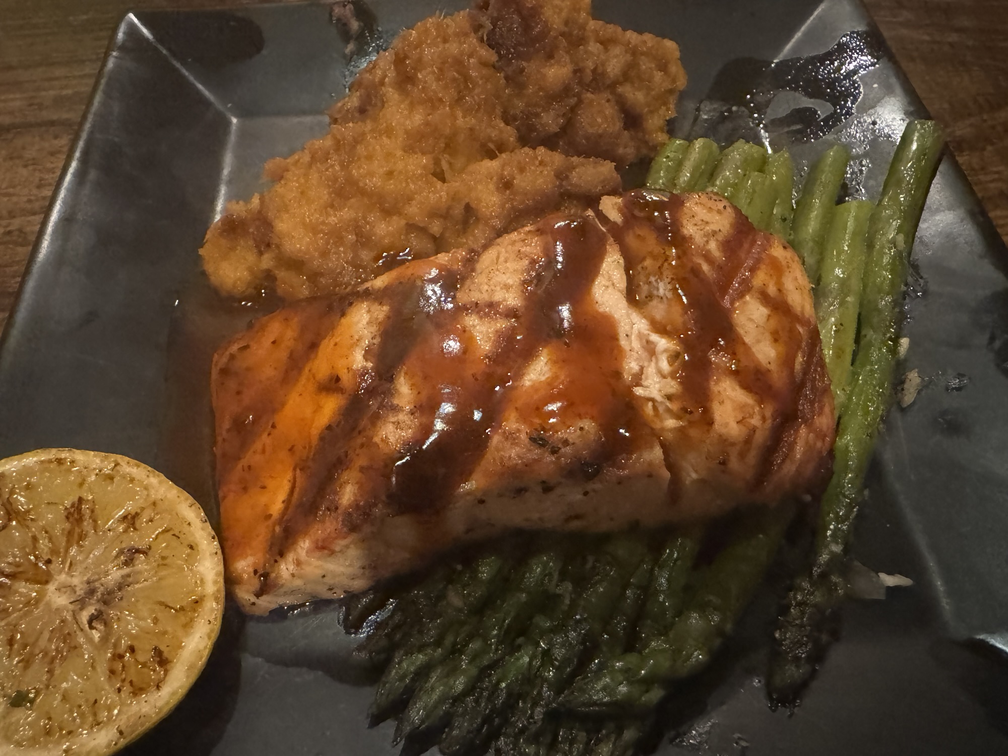 We stopped in at Harvest Moon Cafe on our drive from Atlanta to Chattanooga, and wow — what an amazing surprise! The salmon was perfectly cooked, juicy, and flavorful with a beautiful glaze, and the tomato pie was incredible — flaky crust, creamy and rich, yet light enough for lunch. Everything tasted so fresh and beautifully presented.